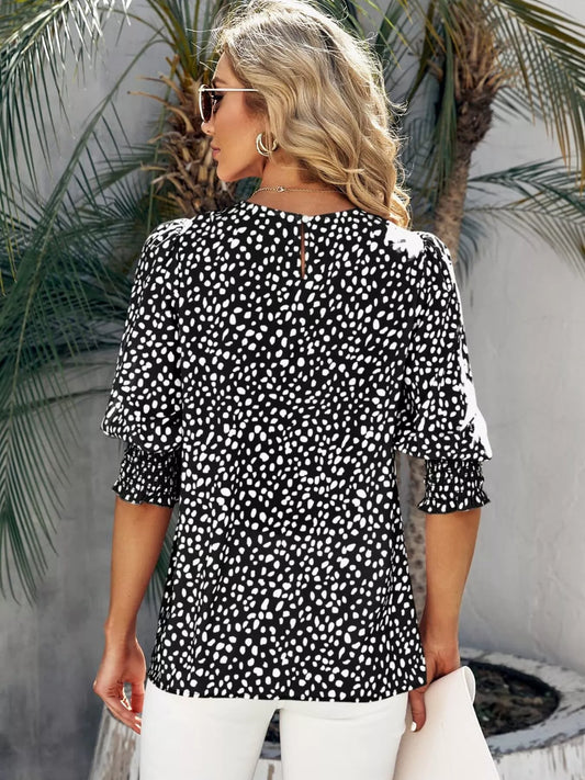 ADORA Printed V-Neck Batwing Sleeve Dress