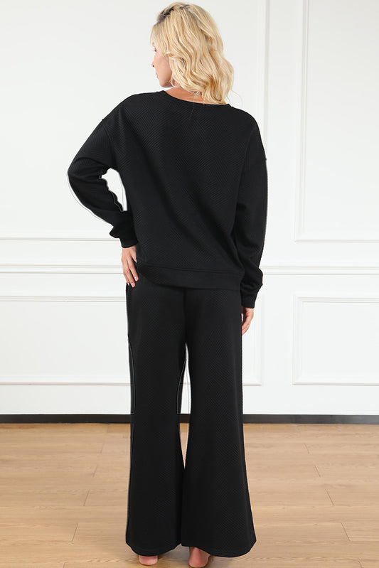 Waffle-Knit Round Neck Top and Pants Set