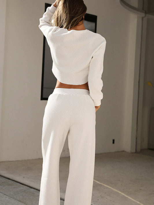 Round Neck Long Sleeve Cropped Top and Pants Set